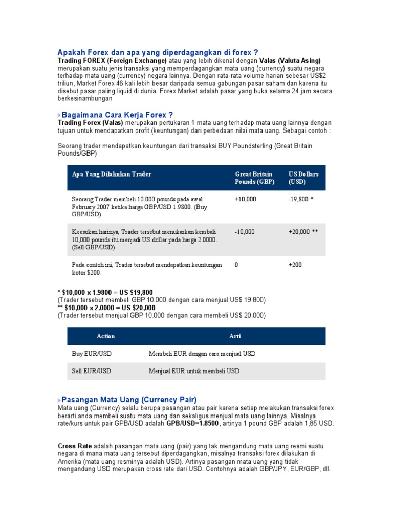 Kita dapat memasuki pasar kapan saja 24 jam sehari baik pagi, siang maupun tengah malam dan di mana saja selama ada akses internet. Dengan volume usd5.3 triliun per hari, perdagangan forex adalah yang terbesar di bursa finansial. Dalam melakukan jenis investasi ini, setiap trader atau orang yang melakukan kegiatan ini harus mengerti cara trading forex atau cara jual beli mata uang asing yang aman dan menguntungkan.